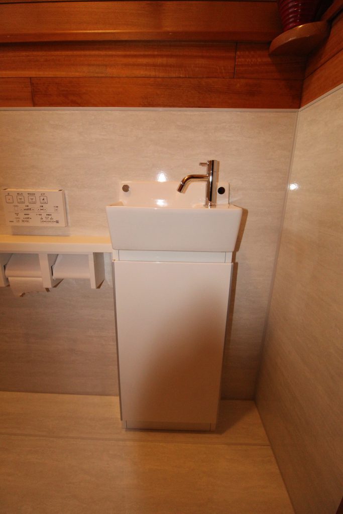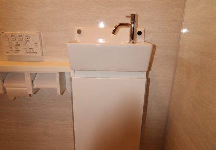 さらにトイレを便利に快適にする、タカラスタンダード『収納キャビネット・手洗器』を取付けさせていただきました。