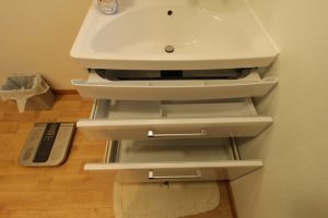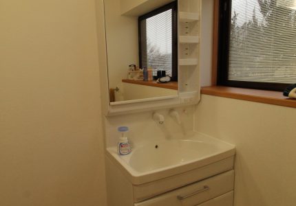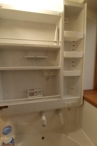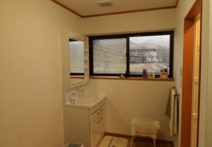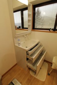 浴室をリフォームするので脱衣場も一緒にリフォームし、洗面化粧台も新しく収納があるものへ交換したいとご依頼いただきました。