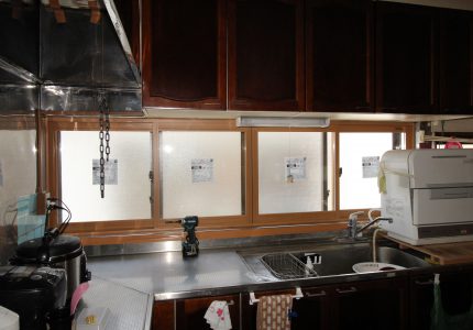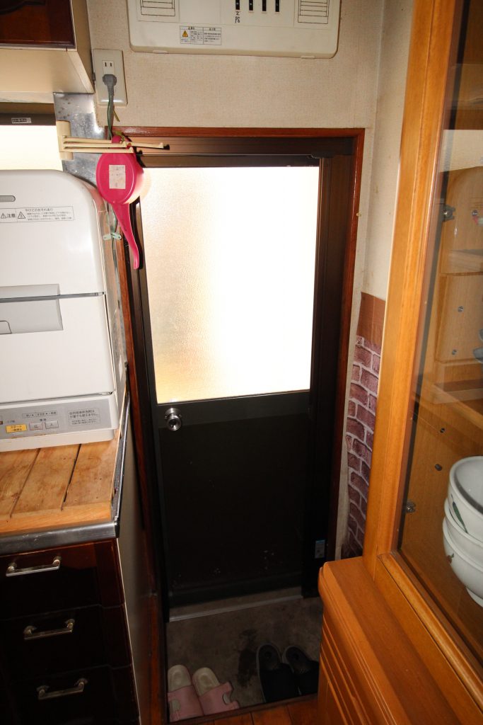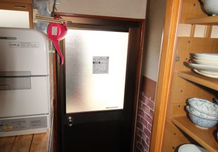既存の勝手口のフレームはそのまま活かして、ガラス部分のみ“複層ガラス”へ取り替える、かんたんリフォームです。