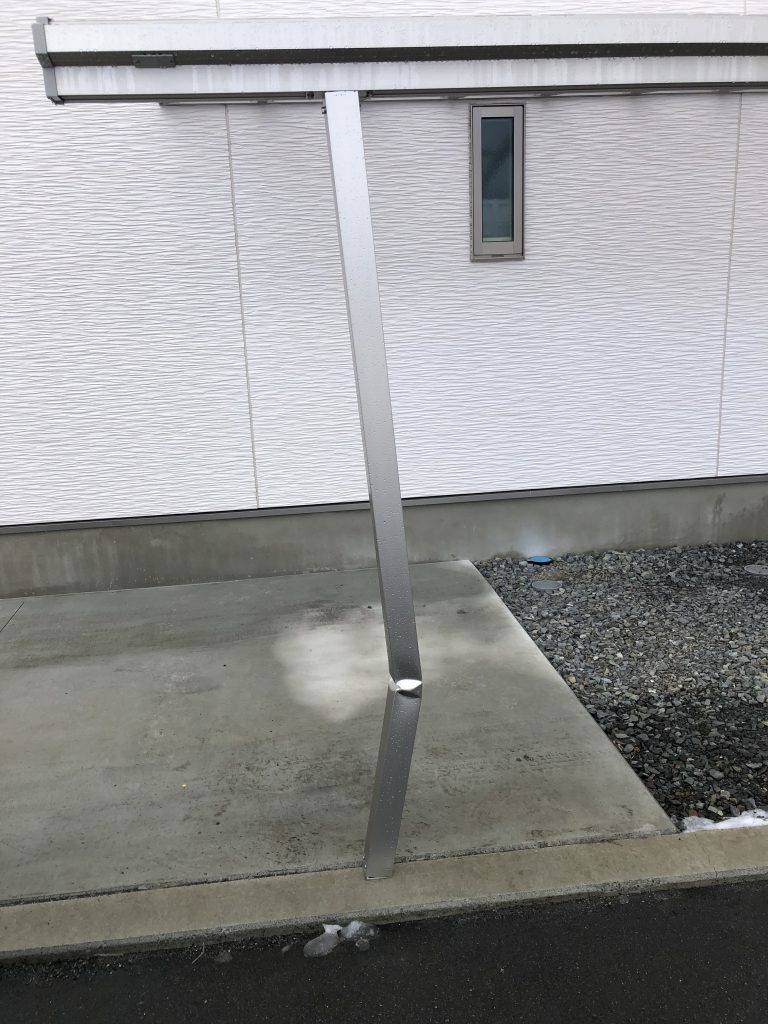 テラス屋根(カーポート)の柱に車がぶつかり、曲がってしまったので交換してほしいとご依頼いただきました。