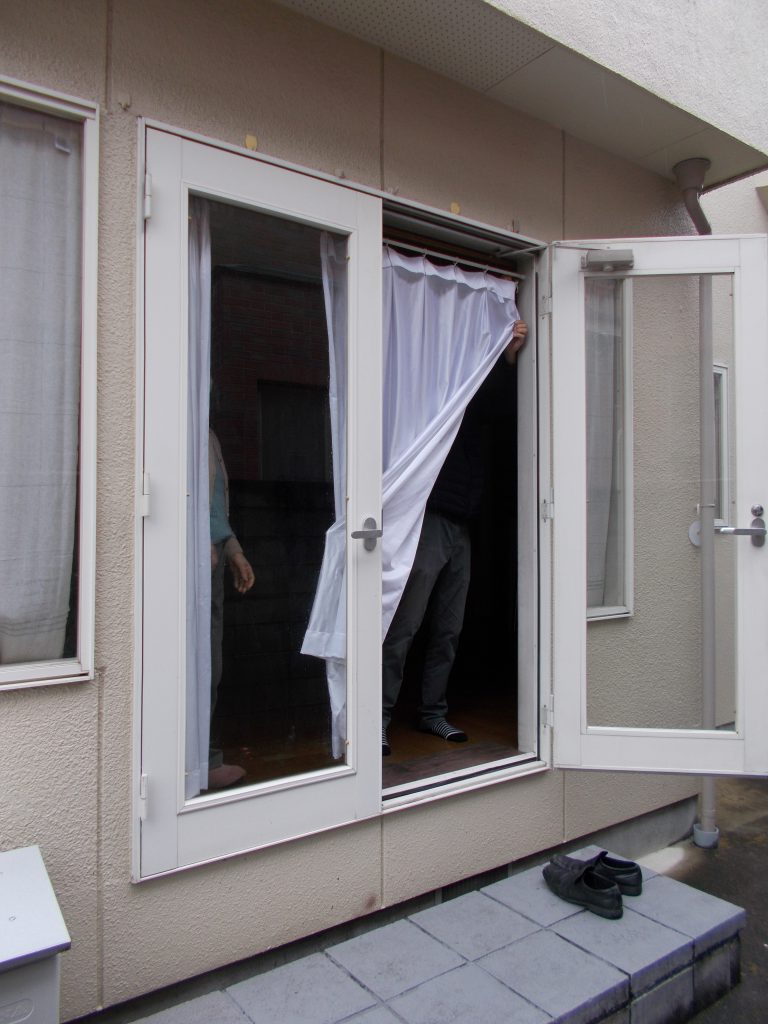 両開きドアで夏は網戸がないので開けられず、冬はすきま風が入ってきて寒いので何とかしたいとご依頼いただきました。