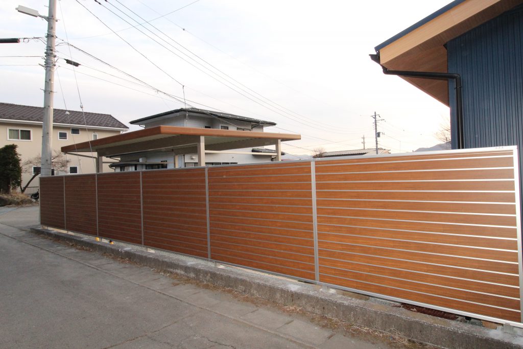 外からの視線をカットし、屋内の空間やお庭でのくつろぎの空間を快適にするアルミ枠と木目調パネルがモダンな住まいに合うオシャレなフェンスです!