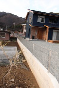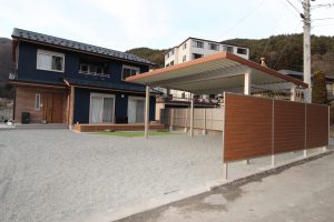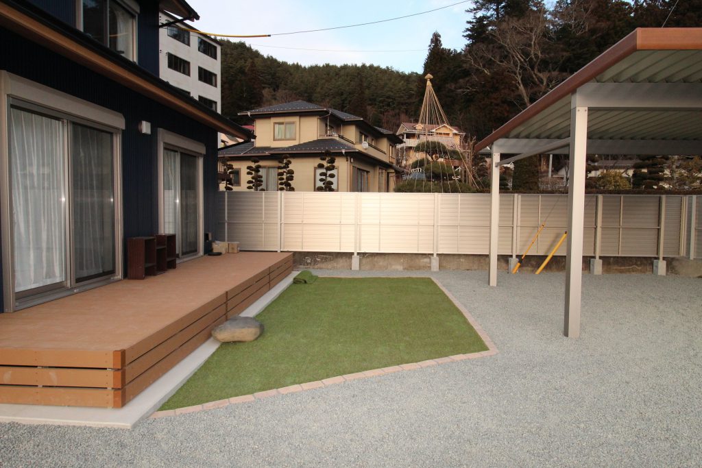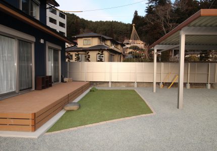 自分たちの土地と隣の土地とに高さがあるため、子供が落ちないようにフェンスをし、観光客が通り視線が気になるので、周りを気にせず過ごせるよう目隠しになるようなフェンスを設置したいとご依頼いただきました。