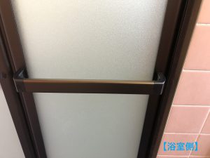 折戸の交換を勧めさせていただき、YKK AP『かんたんドアリモ 浴室ドア』を“四方アタッチメント工法”で施工させていただきました。