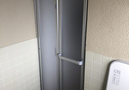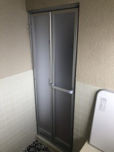 YKK AP『かんたんドアリモ 浴室ドア(折戸)』を取付けさせていただきました。