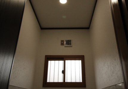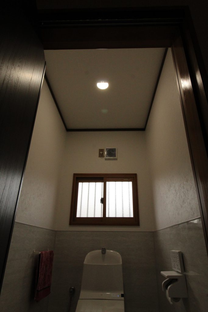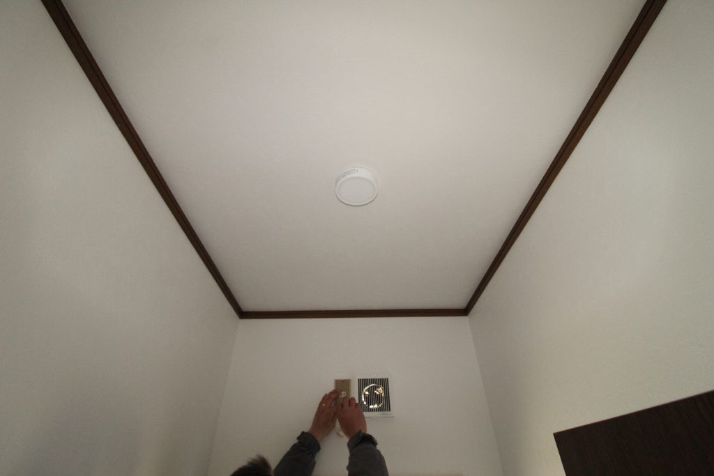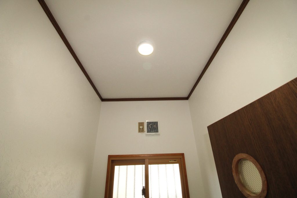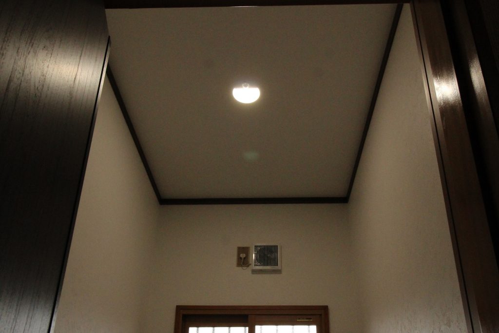 トイレの照明を“人感センサー”付のライトに変え、換気扇と連動し電気の消し忘れの心配をなくしたいとご依頼いただきました。