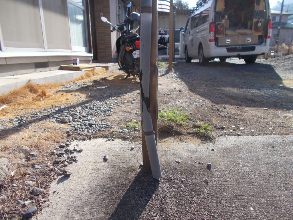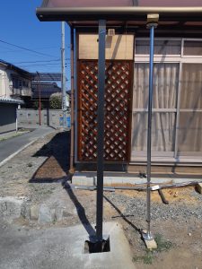 テラス屋根の柱を曲げてしまったので、柱を交換したいとご依頼いただきました。