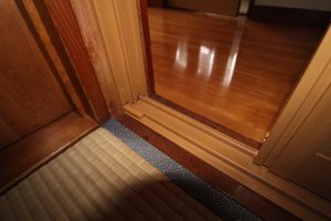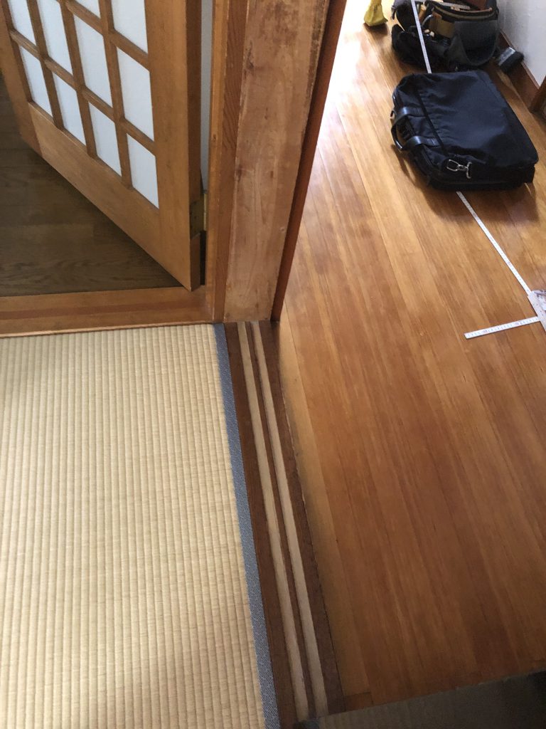 間仕切り専用の「間仕切り用下枠」で、床の収まりがフラットに近いのであまり違和感なく、スッキリとした仕上がりになりました。