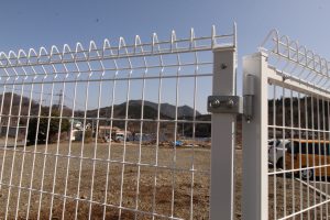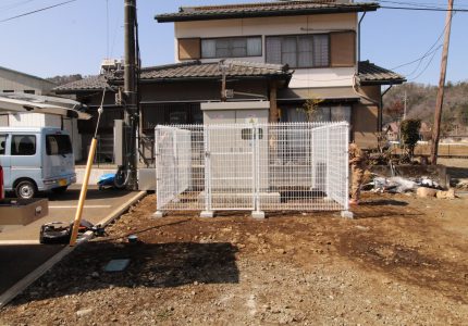硬化後セキスイ『メッシュフェンスG10』と、出入りの際に使用するセキスイ『メッシュフェンスG10 門扉』を設置させていただきました。