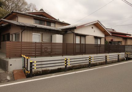 道路からの視線を遮り、川へ落ちないようにフェンスを設置したいとご依頼いただきました。