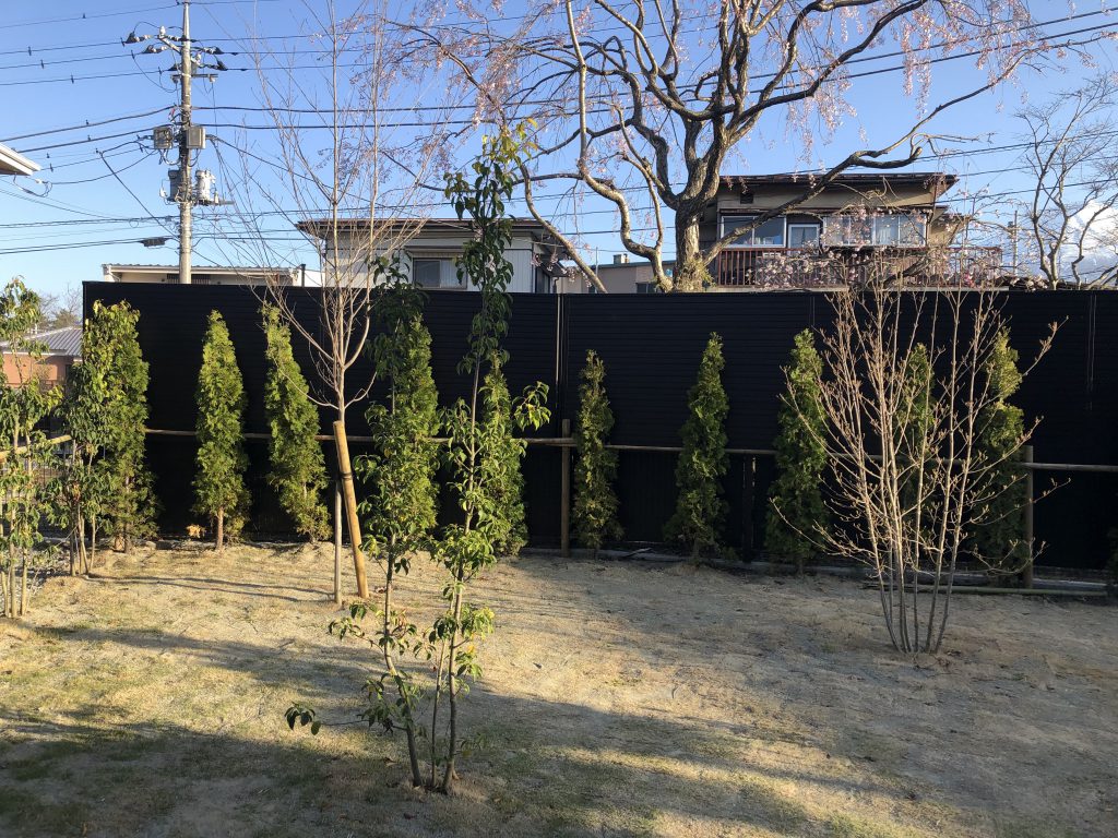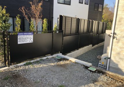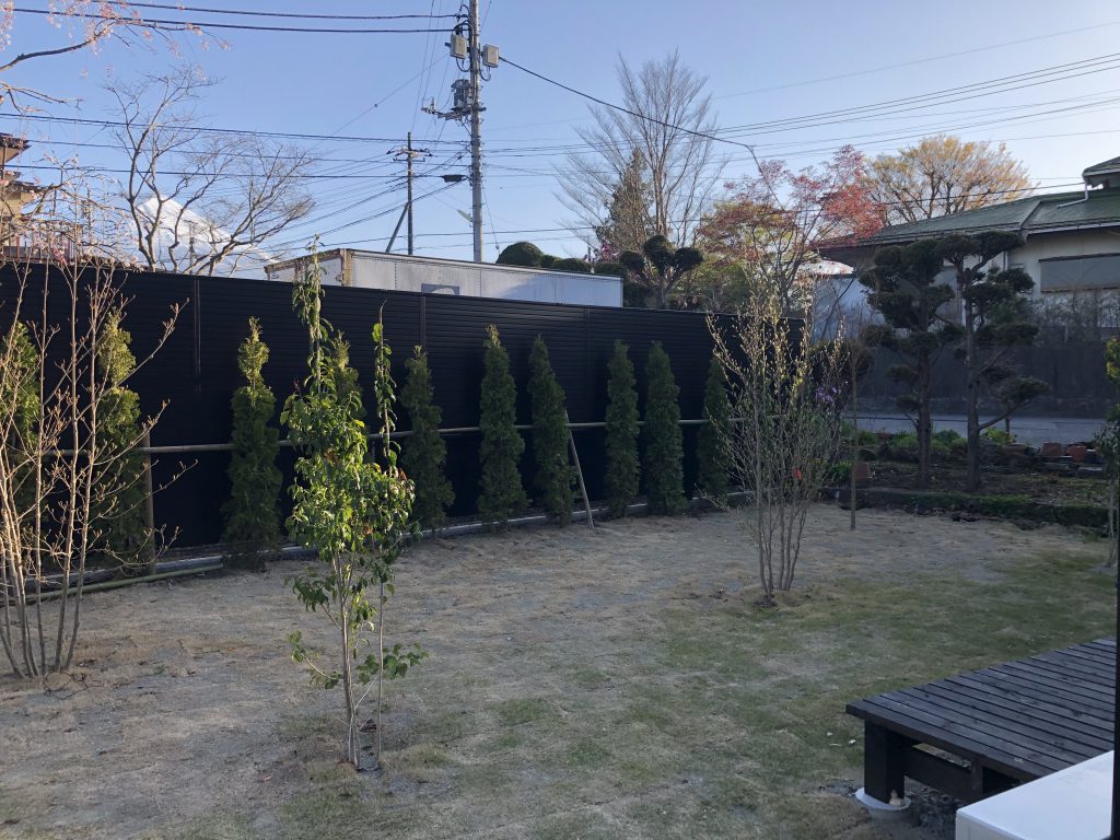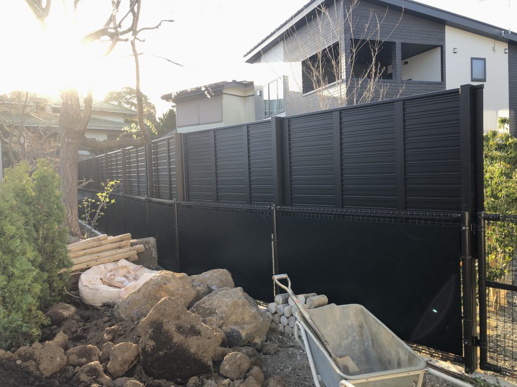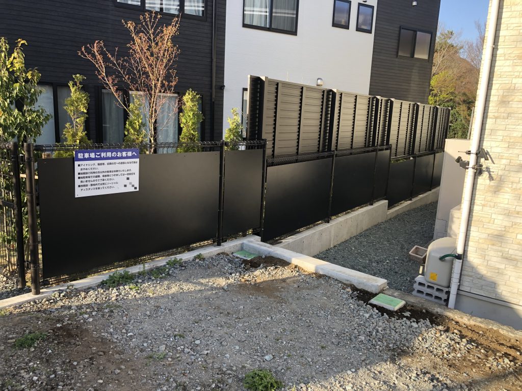メッシュフェンスからも視線を遮れるように、『アルミ樹脂複合板』を使用し目隠しになるようにしました。