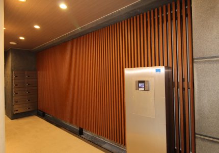 ビルに入ってすぐ隣のビルの外壁が丸見えだったのが、建物のアクセントとしてもオシャレなエントランスになりました。