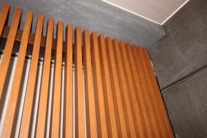 構造材は「アルミ製」、格子は「ラミネート材」の「キャラメルチーク」カラーを採用し、圧迫感もなくあたたかみのある印象を与えてくれます。