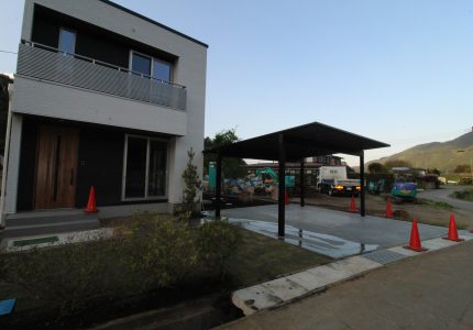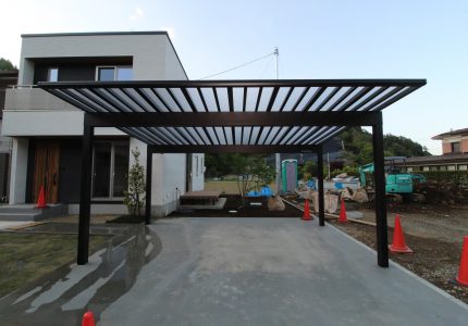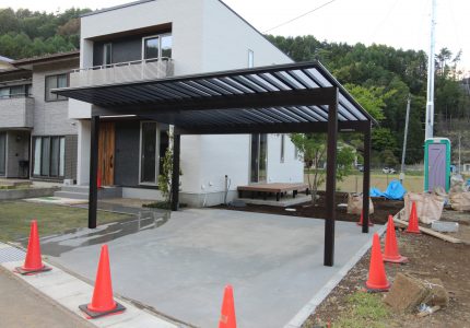 新築住宅へカーポート設置のご依頼をいただき、YKK AP『エフルージュ ツイン(積雪50cm仕様)』を施工させていただきました。