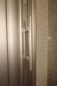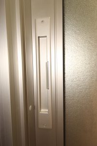ラッチ機構(オプション)により障子を閉めるとすぐに鎌錠がかかり、障子が跳ね返ったりうっかり戸が開いたままになるのを防ぎ、手を障子の間に引き込まれないよう、引戸にストッパーがついていて安全です。