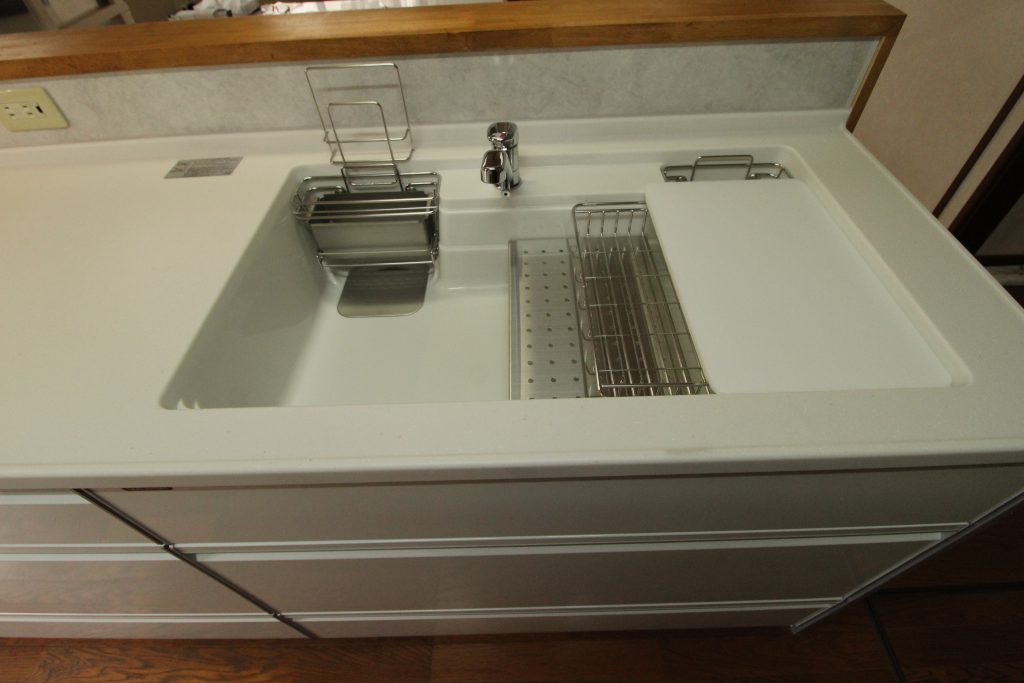 シンクは、キズや衝撃に強い“アクリル人造大理石”で、ワークトップとシンクの間にすき間がないのでお手入れもカンタン!