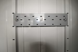 収納物に合わせて棚フックで棚板の高さを調節可能で、床や棚板は業界最高水準の強度を誇っており少し重たい物でも安心して収納でき、パネルとJフックによりスポーツ用品やガーデニング用品といった様々な小物を引っ掛けて保管しておけます。
