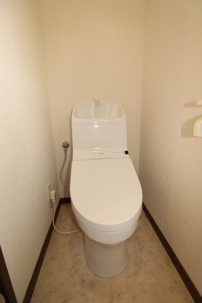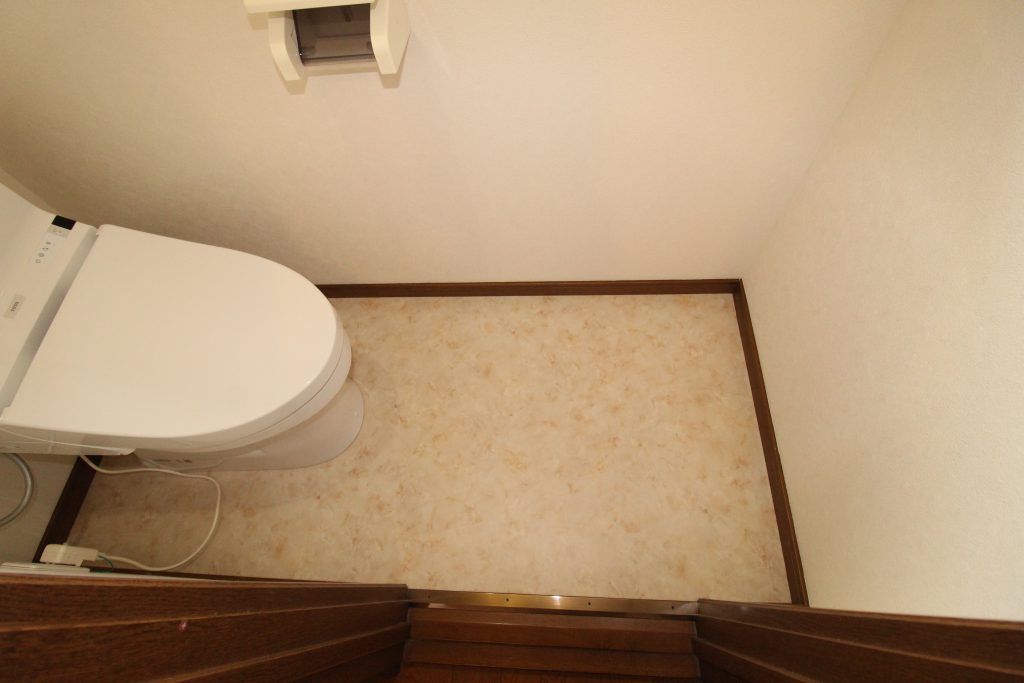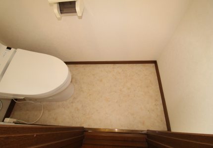 壁のクロスやクッションフロアも貼り替えさせていただき、明るく清潔感のあるトイレに仕上がりました!
