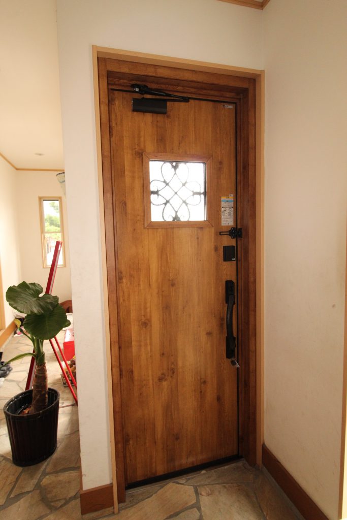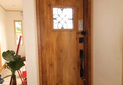 鍵をささずに施解錠でき、断熱性が高い今風のデザインの玄関にしたいとご依頼いただきました。
