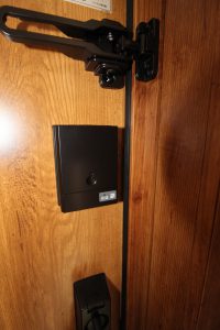 また通常のドアガードの使用方法に加え、アーム部分を受け側にスライドすることでドアをロックでき上下の鍵と合わせて使用するとより安心です。