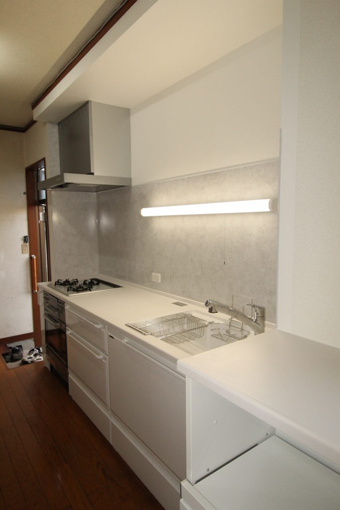 キッチンが古くなってきているのでお掃除がカンタンで、吊戸棚をなくしてもたっぷり収納できるキッチンに新しくしたいとご依頼いただきました。