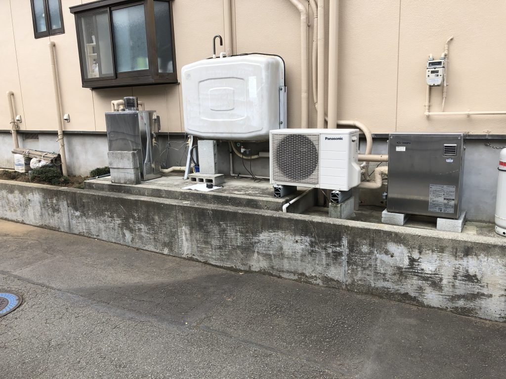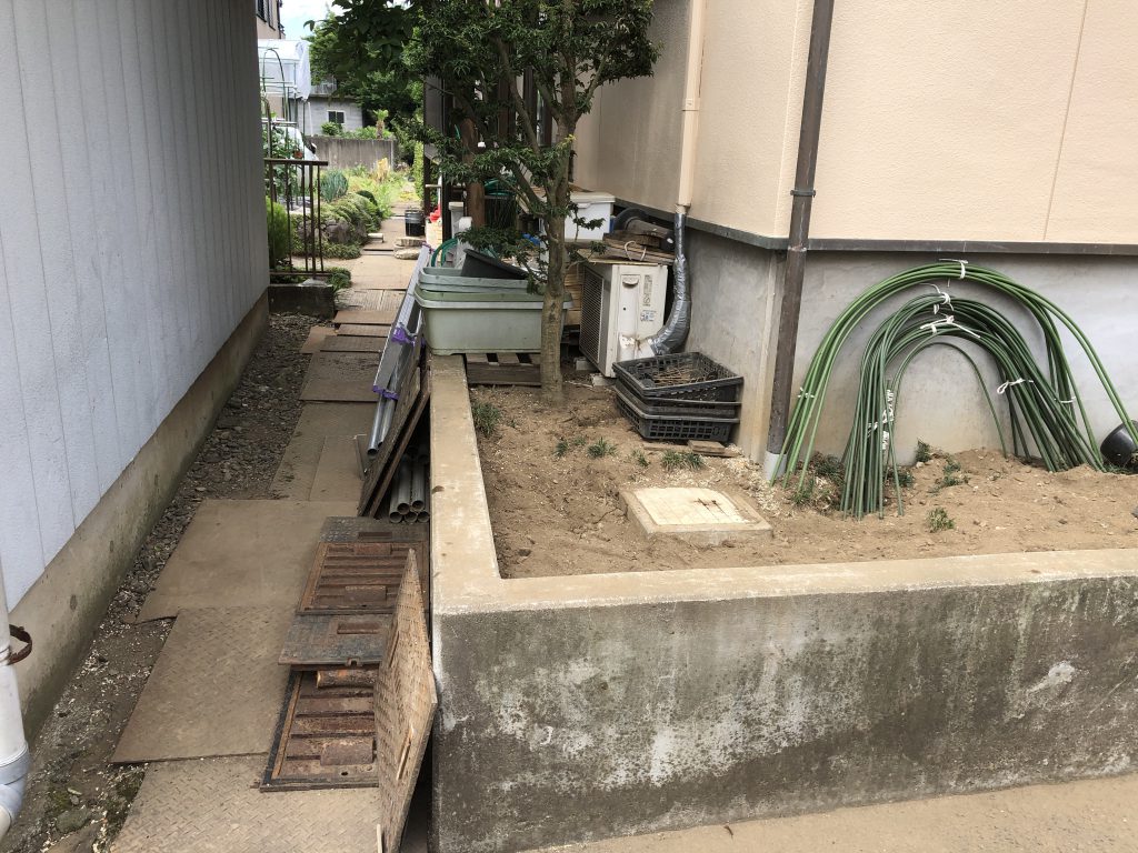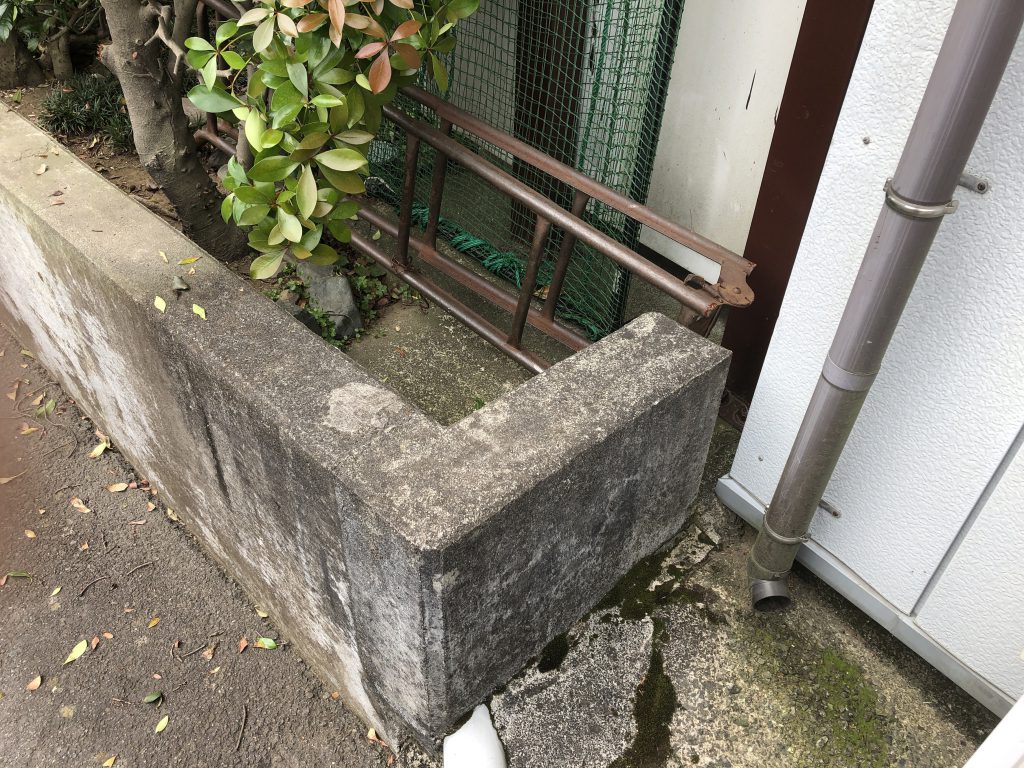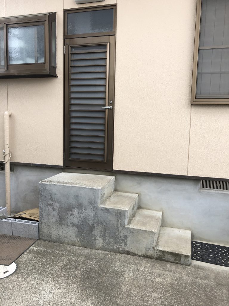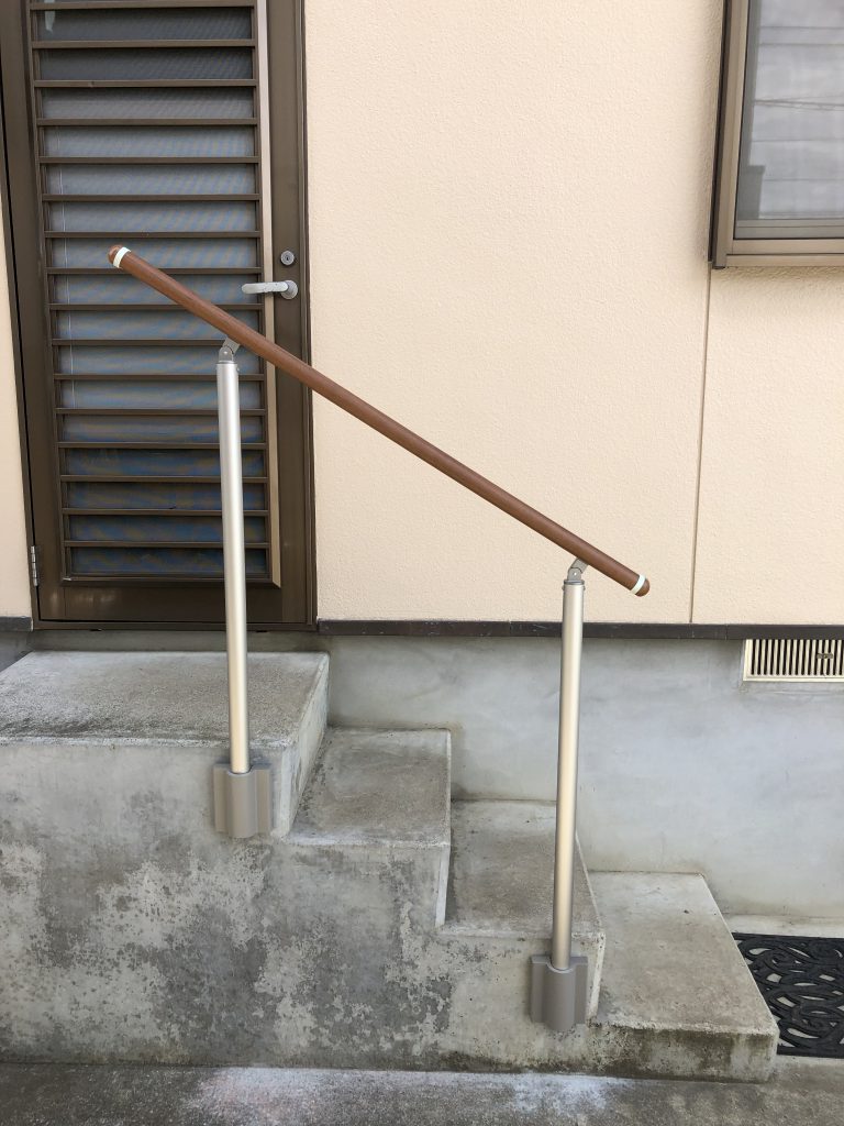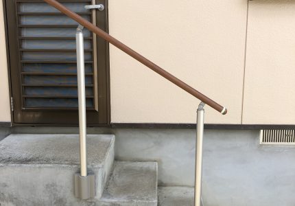 石油タンクとガスボンベのところは出入りが出来るようにし、勝手口から階段を上り下りする際の補助に手すりを取付けたいとご依頼いただきました。