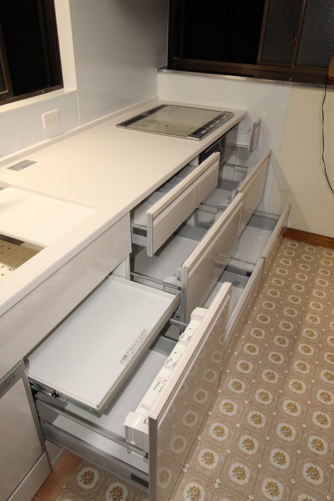 水回りのリフォームを検討していて、収納がたくさんあってお掃除もカンタンで、家事のしやすいキッチンに変えたいとご依頼いただきました。