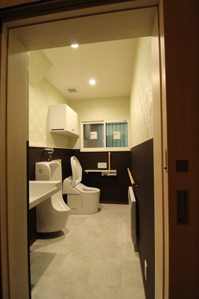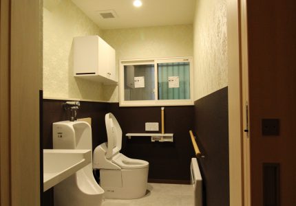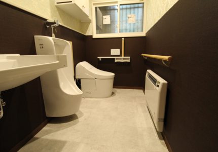 立ち座り・歩行をサポートする手すりを取付けたりと、バリアフリー仕様なので誰もが使いやすいレストルームになりました。