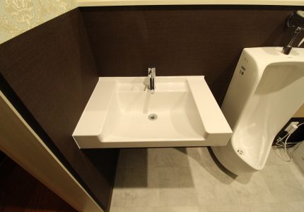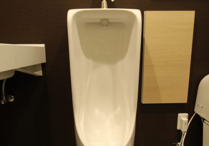男性用小便器は、TOTO『壁掛自動洗浄小便器』を取付けさせていただき、【セフィオンテクト】が施してあり、陶器表面がナノレベルまでなめらかで、汚れが付きにくく落ちやすくお手入れもカンタンです!
