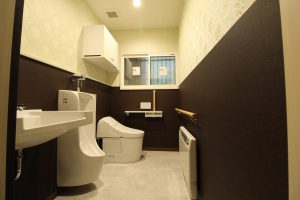 トイレ出入り口には、YKK AP『ラフォレスタ アウトセット引戸』を取付けさせていただきました。