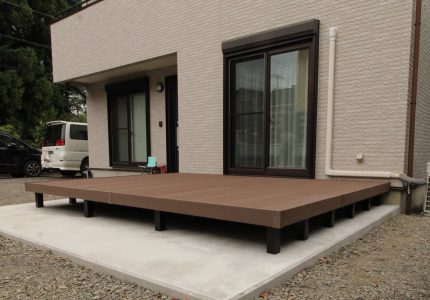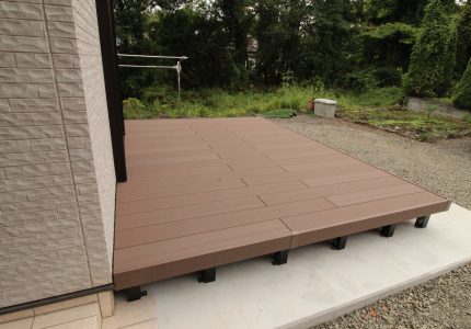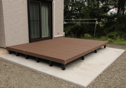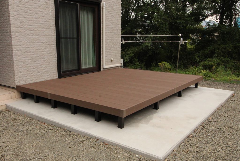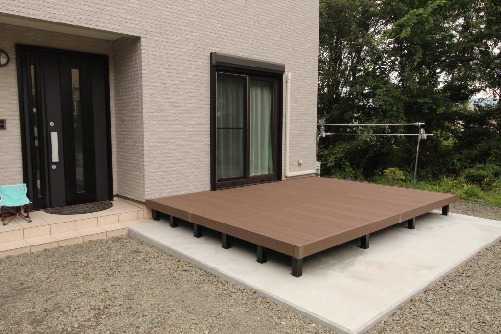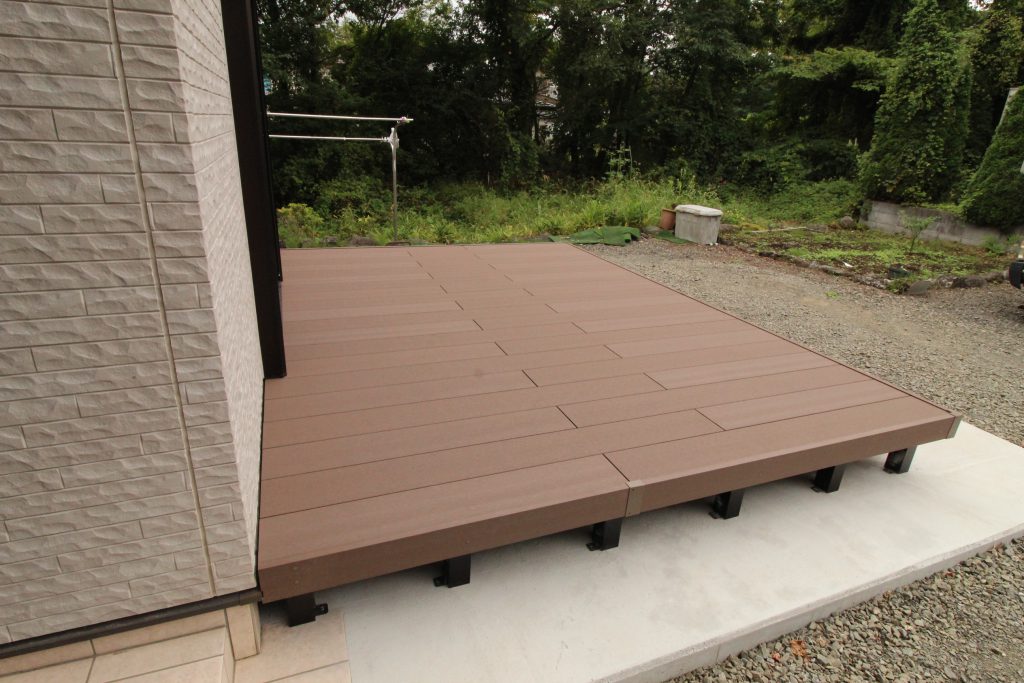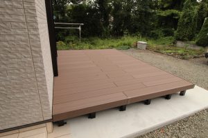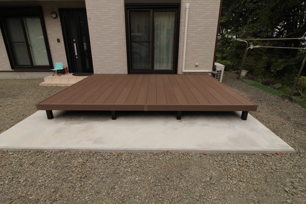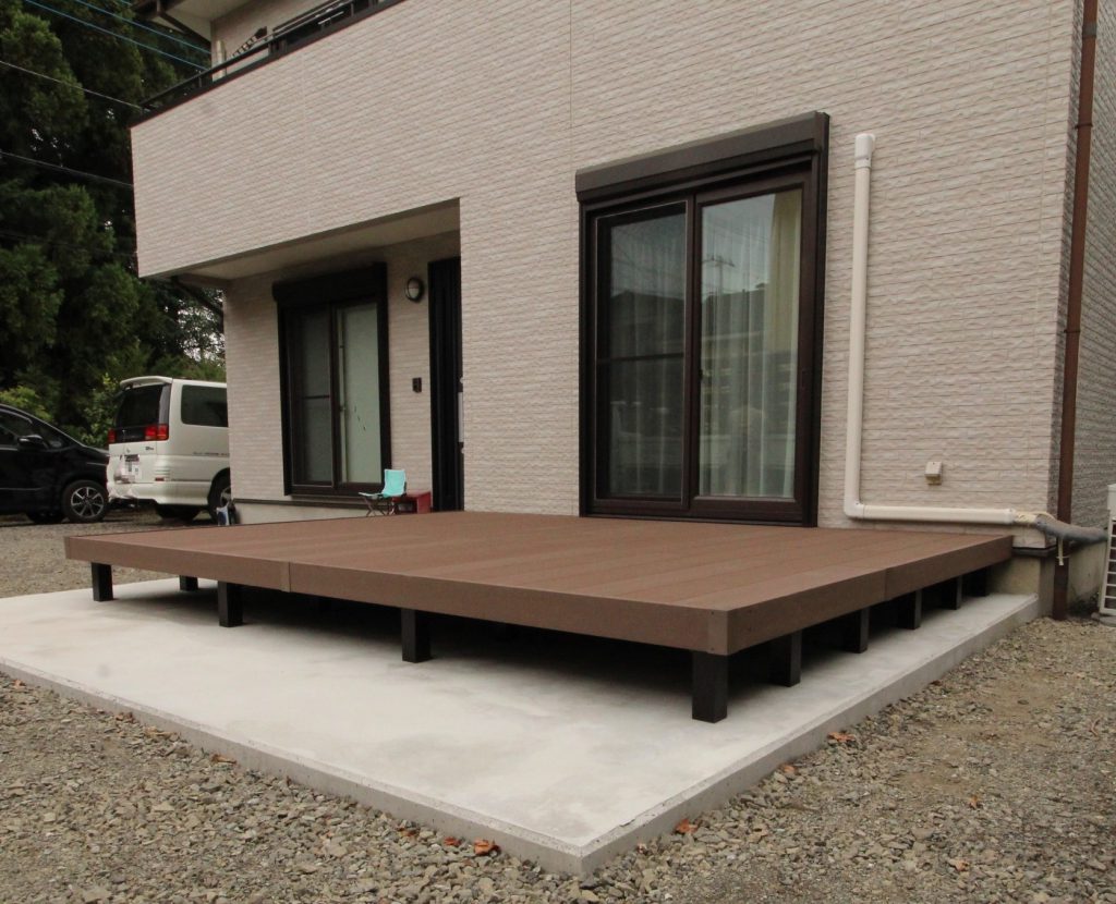 木でデッキを作ると定期的に塗装などしなければならないので、メンテナンスがあまりかからないデッキを設置したいとご依頼いただきました。