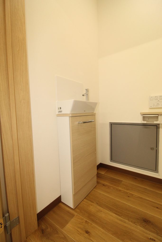 キャビネット付なので、トイレットペーパーや掃除用具など賢く収納できます。