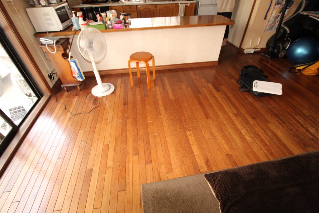 既存のフローリングが、傷だらけになっているので直したいとご依頼いただきました。