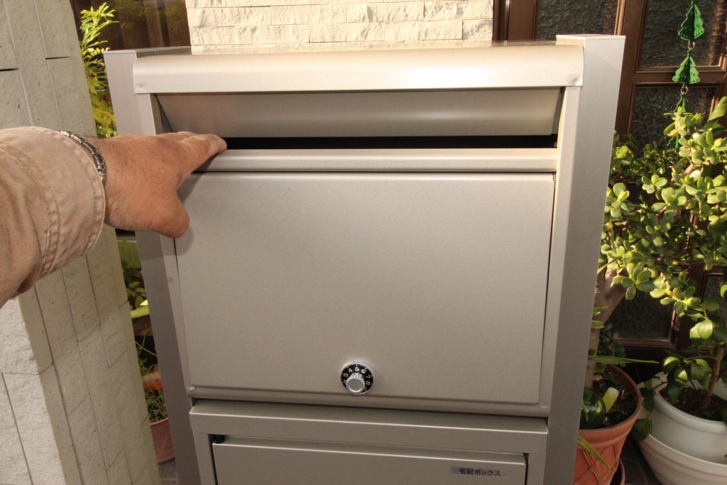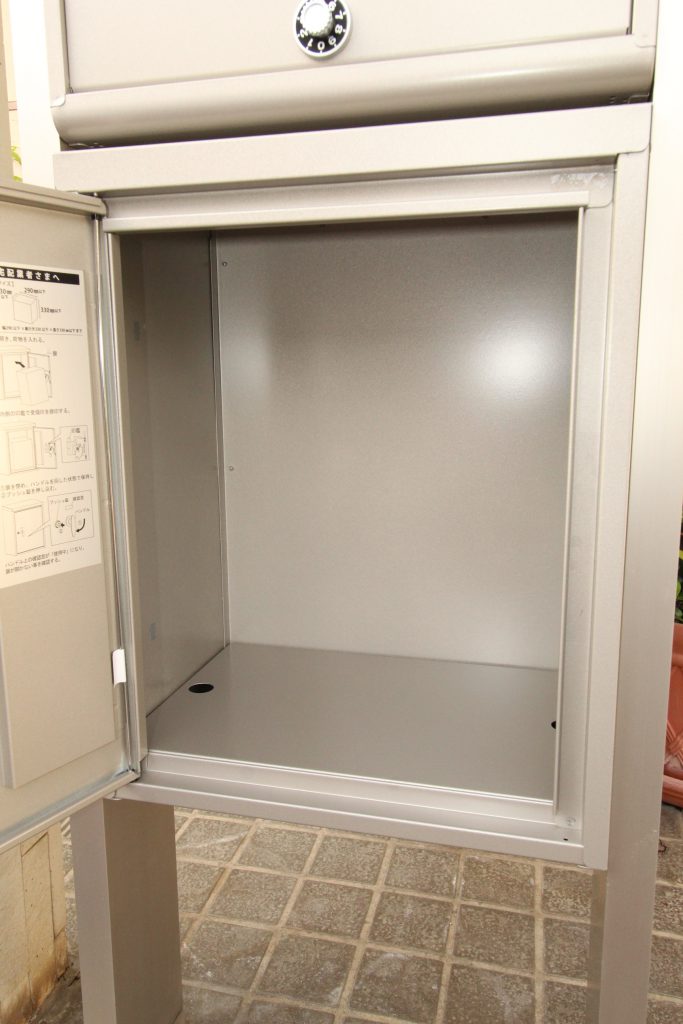 宅配ボックスは、宅配業者様段ボール規格宅配80サイズ・20kgまで受取可能で、扉の裏に受領印入れがついておりシャチハタなどの印鑑をいれておけば、不在時でも荷物をスムーズに受け取れるので受け取る側にも運ぶ側にもメリットがあります。