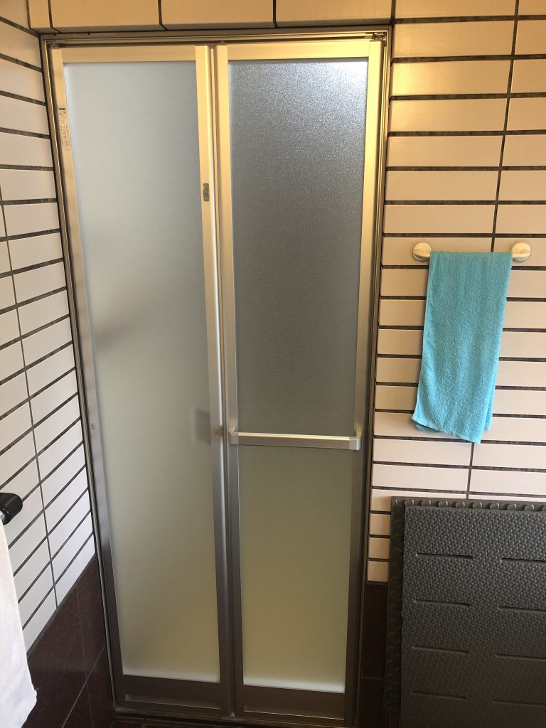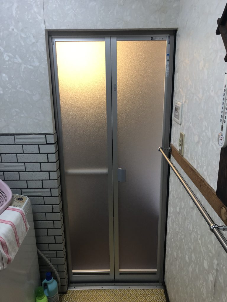既存の浴室ドアが開閉しにくく、お風呂に入っている時に壊れてしまったら大変なので直したいとご依頼いただきました。