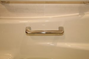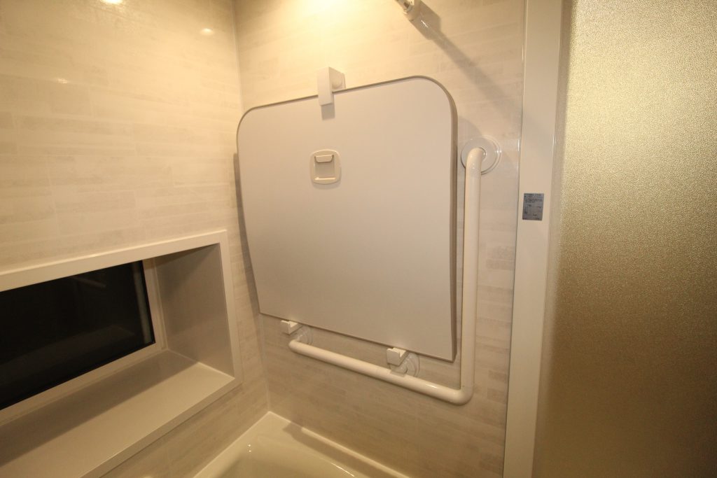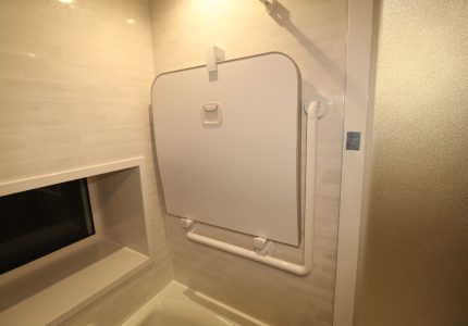 段差がなく、手すりを取付けて年を取っても安心して入れる浴室にしたいとご依頼いただきました。