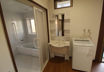 脱衣場から勝手口へ行けるようにし、窓を増やして明かりと風が入るようにしたいとご依頼いただきました。