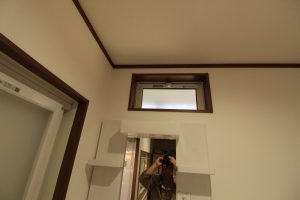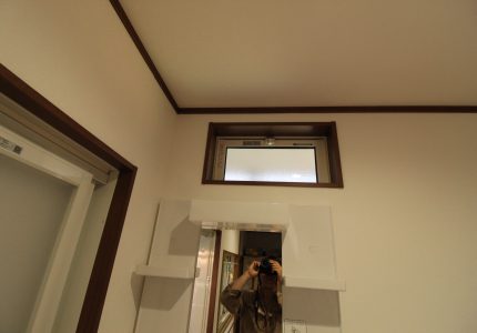 洗面化粧台上の壁に新たに、YKK AP『エピソードⅡ NEO 内倒し窓』を取付けさせていただきました。