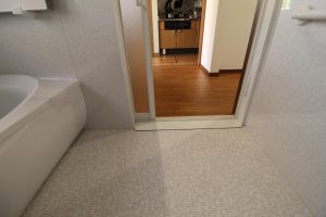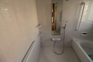 浴室への出入りは、段差わずか5mm以下でつまずきにくい設計になっており、手すりもあるので小さなお子様やお年寄り、介護に必要な方のいる家庭でも安心して入浴できます。