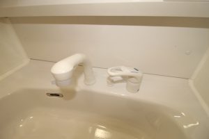 洗面化粧台は、タカラスタンダード『オンディーヌ(デッキ水栓タイプ)』を設置させていただきました。