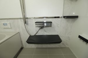 【ワイド浴槽(ベンチ付)】なので、ゆったり足を伸ばせる全身浴とベンチに腰掛けて半身浴も楽しめます。