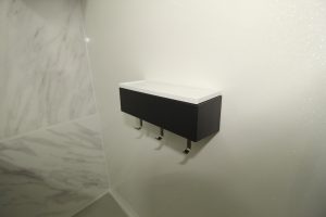 カウンターの材質も浴槽と同じ“アクリル人造大理石”が使用され、気品ある光沢と傷がつきにくい表面の硬さとなめらかさで汚れもサッとひと拭き。
