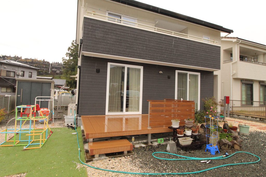 天気のいい日にデッキに出て遊んでいても日差しをカットしてくれ、雨の日でも屋根があることでデッキが濡れるのを防げ安心ですね!