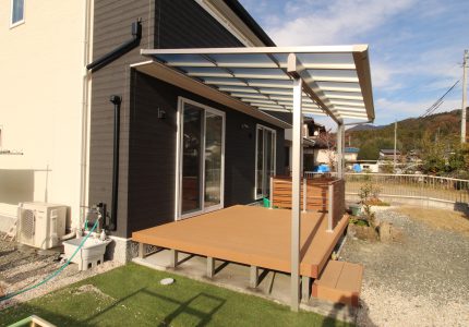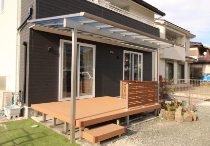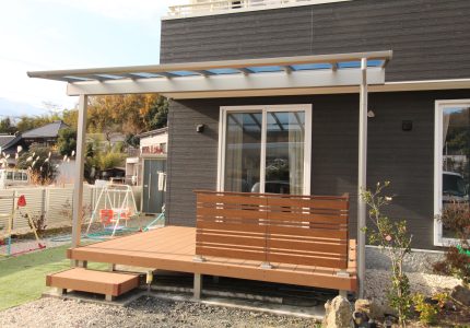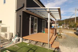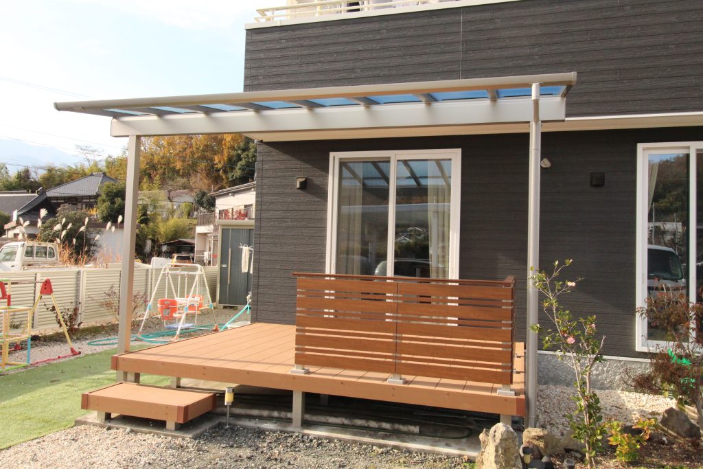 日差しを遮りデッキ上を快適にするテラス屋根👍
