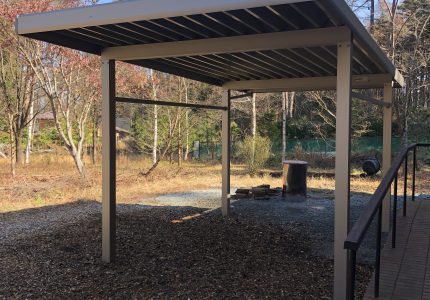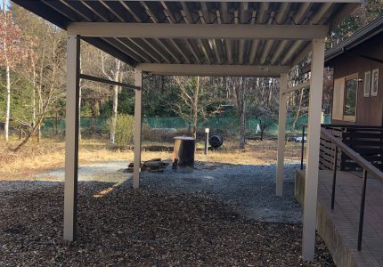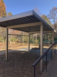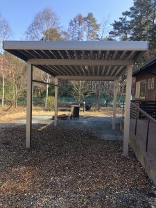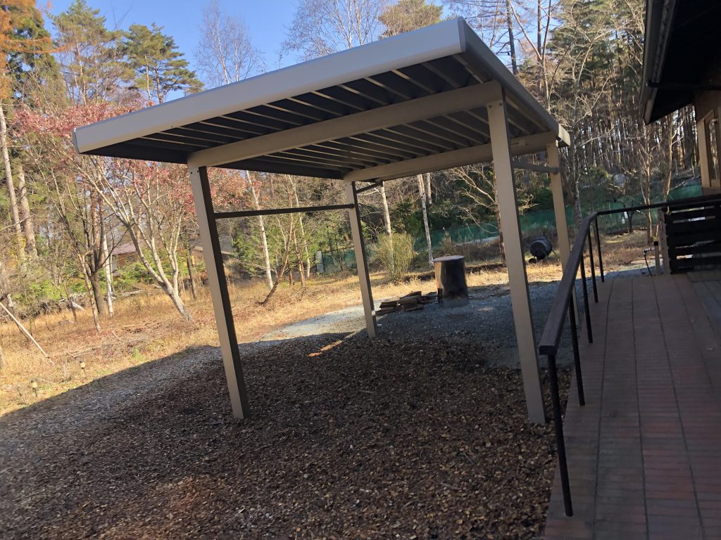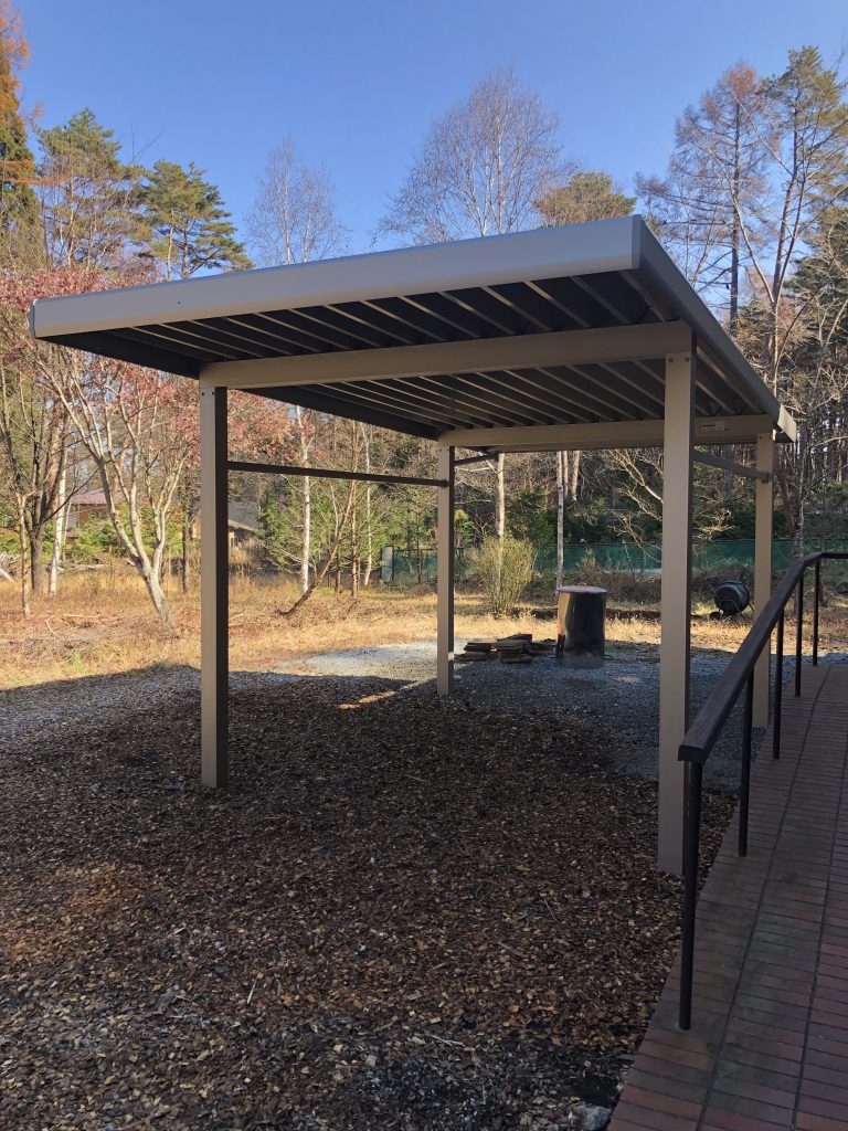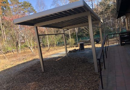 柱部分をしっかり埋め込み、強靭な【スチール折板屋根】を太い4本の柱でしっかり支え【横材】により安定感のあるカーポートになりました。