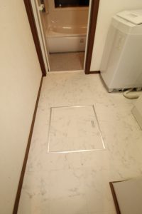 脱衣室に床下点検口を取り付け、定期的に配管の水漏れやシロアリの有無、基礎のひび割れなどの確認したり、問題が起こった際に早めに対処することができ安心です。
