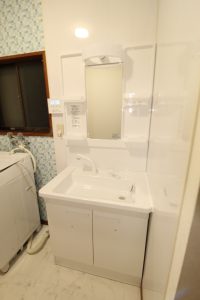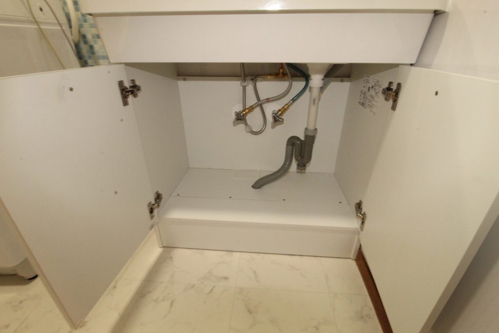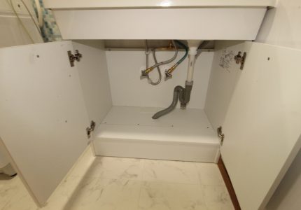 洗面化粧台を新しくし、床下点検口をつけてほしいとご依頼いただきました。