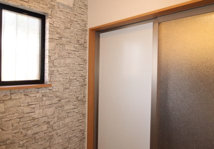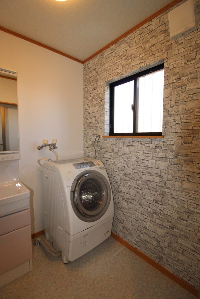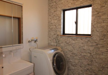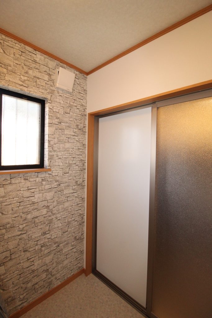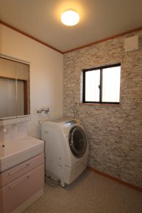 天井・壁のクロス、床のクッションフロアを変え、壁の一面種類を変えることでオシャレで雰囲気があり、脱衣場全体が明るくなりました。