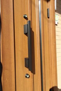 どんなドアにもマッチする「角型ストレートハンドル」で開閉しやすく、「下枠段差緩和材(ゴム製)」により下枠の室内側立ち上がり部の段差を解消し外に出る際のつまづく危険性が減少され、また仕上がりがキレイになりゴミの掃き出しもラクになります。