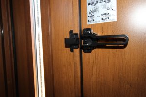 また通常のドアガードの使用方法に加え、アーム部分を受け側にスライドすることでドアをロックでき上下の鍵と合わせて使用するとより安心です。